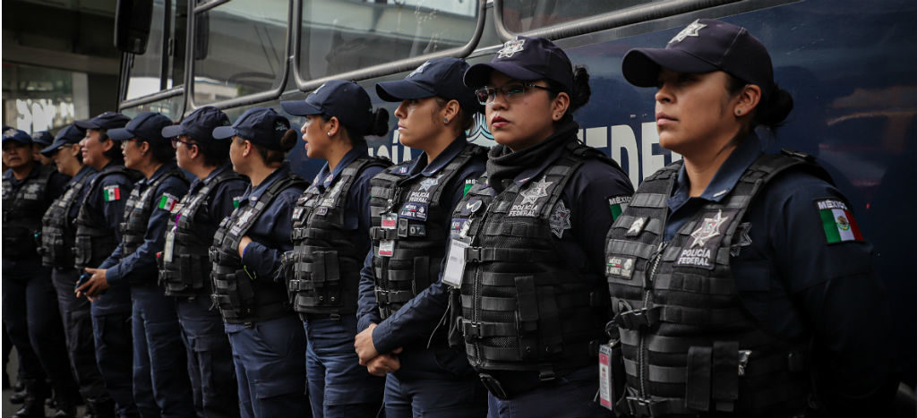 Con mantas, los uniformados expresaron críticas contra el titular de la SSPC, Alfonso Durazo, y le exigieron que se les dé una indemnización justa y conforme a la ley.