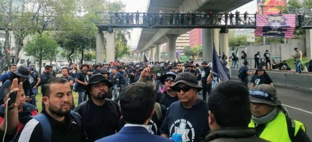 Luego de que policías federales inconformes con la desaparición de su cuerpo de seguridad bloquearan una vez más Periférico Sur, el secretario de Seguridad, Alfonso Durazo, anunció que permanecía abierta una mesa de diálogo.