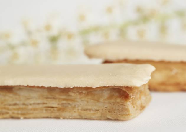 El hojaldre, como la polka, también es aire, alegría y respingo de placer; una delicia con pinta aristocrática. Uno de esos productos que confieren abolengo a una pastelería porque necesitan un ajuste matemático. Un pastel construido con paciencia infinita para su hinchazón con el calor y su posterior desintegración perfecta en la boca, pero manteniéndose entero entre las manos. El hojaldre es un crescendo repostero de amasado y horno que, como el baile de Strauss, acelera el apetito y provoca un estallido final de tambores y platillos. Oficios que hacen que el público se ponga en pie.