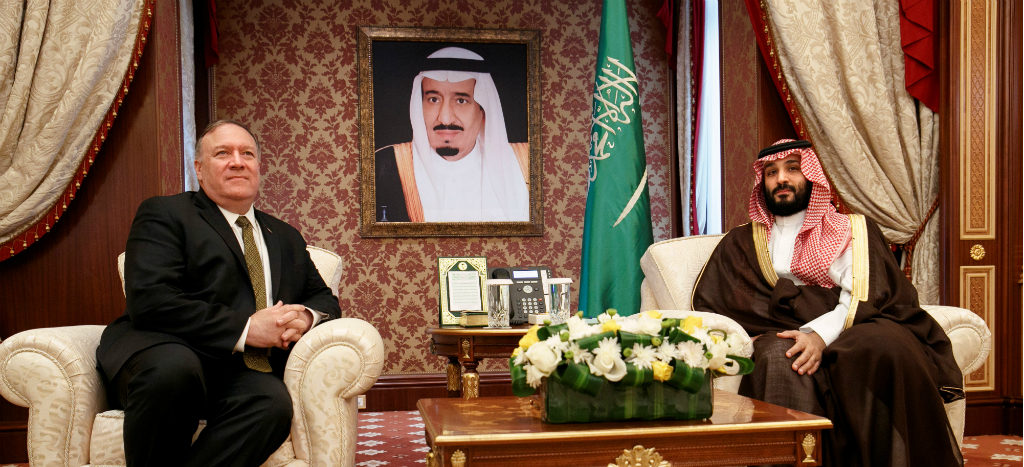 El secretario de Estado estadounidense, Mike Pompeo; y el príncipe Mohamed bin Salmán.
