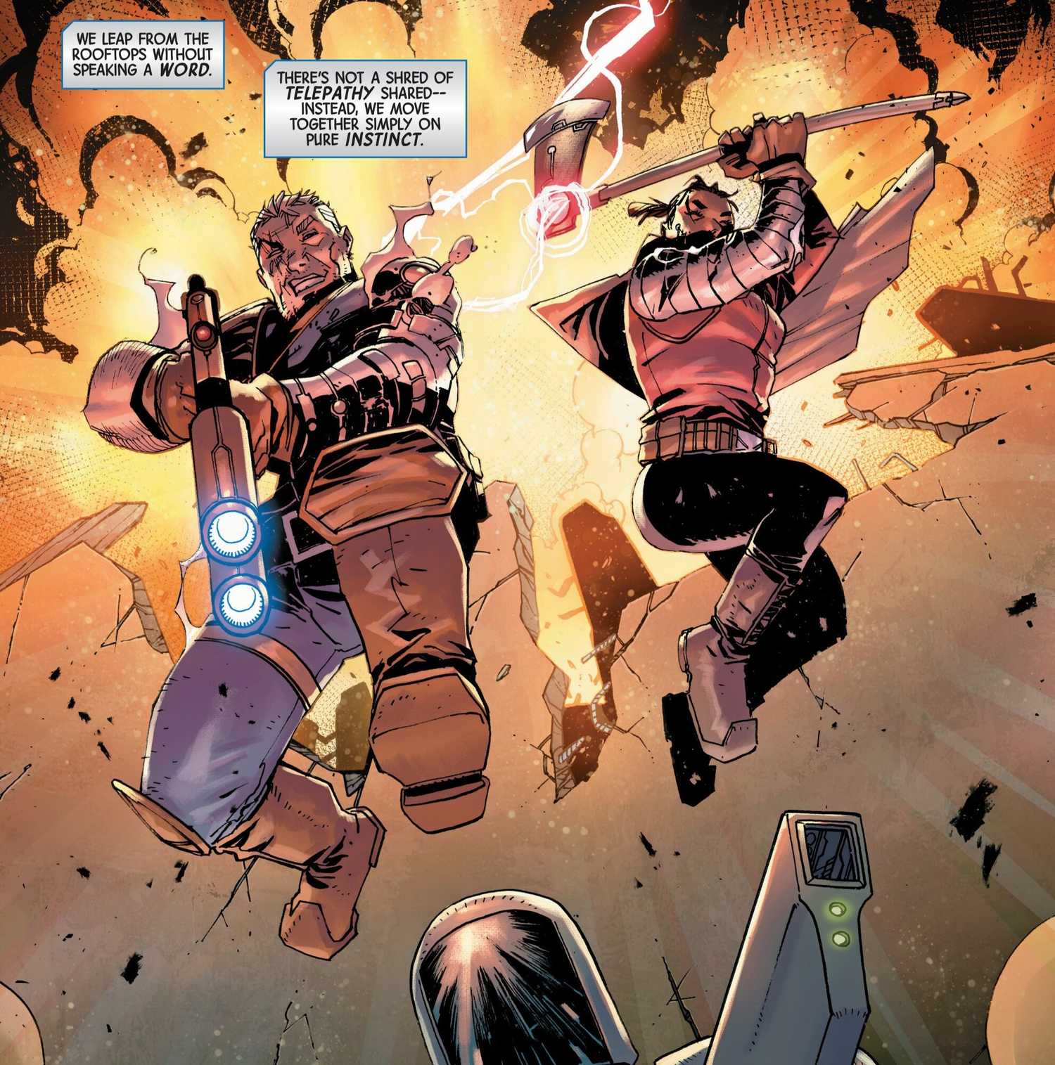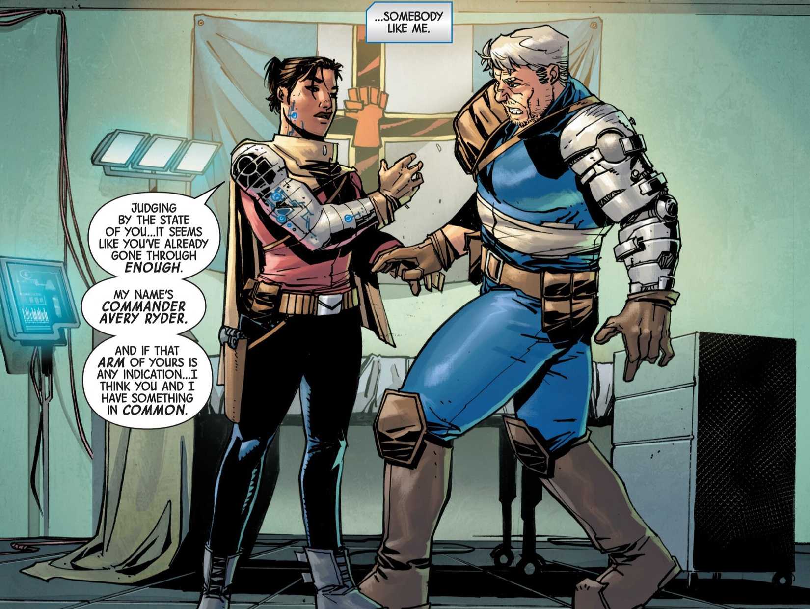 Hasta ahora, Cable creía que era el único superviviente del virus en toda la historia. Ahora, el mutante que viaja en el tiempo se ha asociado con un luchador por la libertad igualmente rudo llamado Comandante Avery Ryder, lo que generó un posible romance entre ellos.