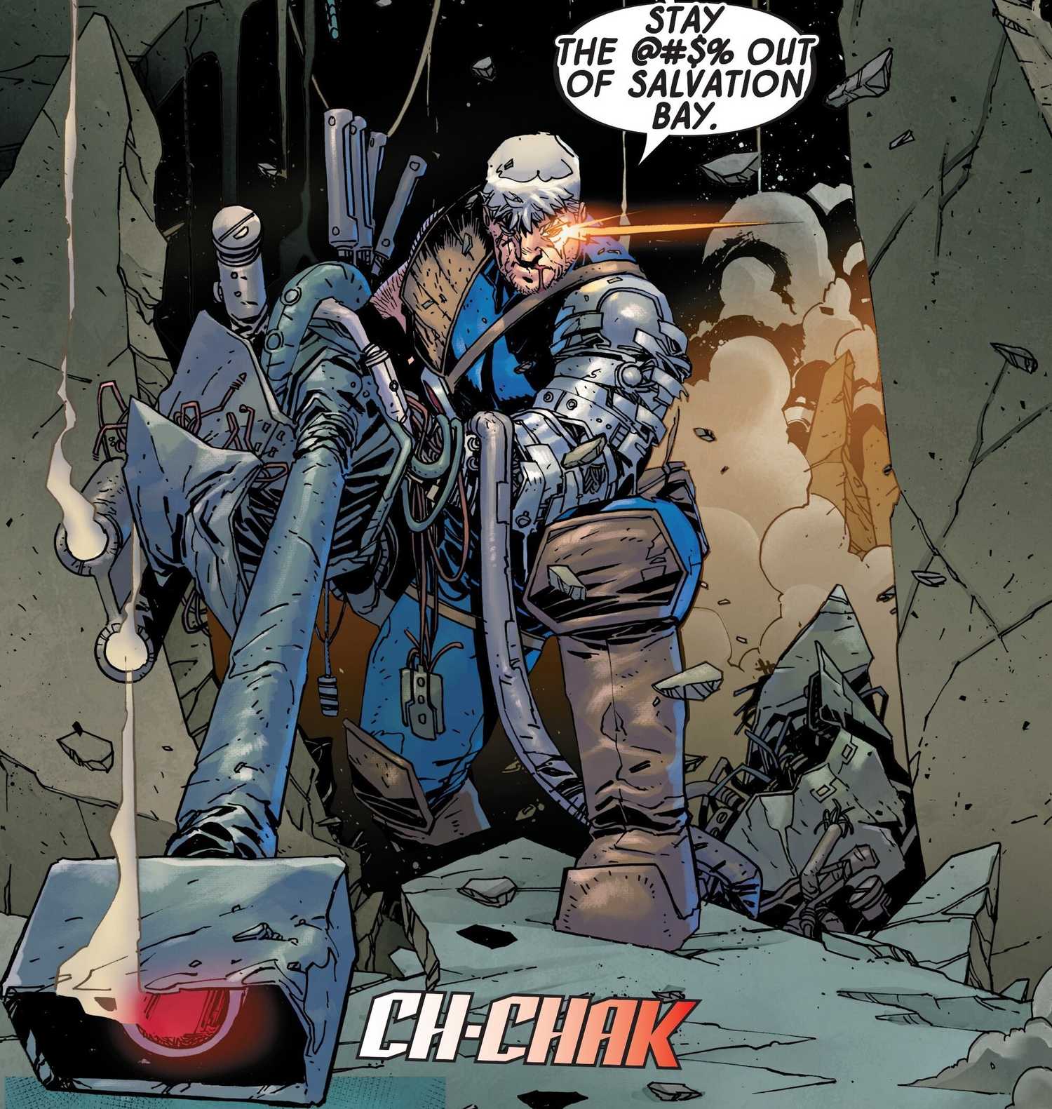 para ayudar a la distópica ciudad de refugiados de Salvation Bay a salir victoriosa de una guerra por la supervivencia. Después de que una misión fallida lo envía a un lugar y tiempo desconocidos, Cable se encuentra en una ciudad llena de gente que vive con el Virus Tecno-Orgánico.