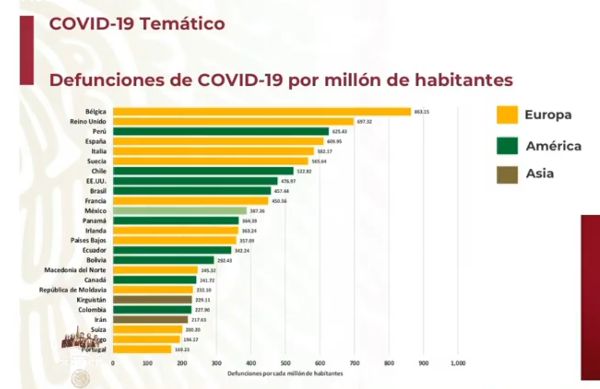 Por su parte, el subsecretario de Prevención y Promoción de la Salud, Hugo López-Gatell, explicó que esta medición se utiliza “para que haya una comparación apropiada”, pues todos los países tienen distintos tamaños de poblaciones.