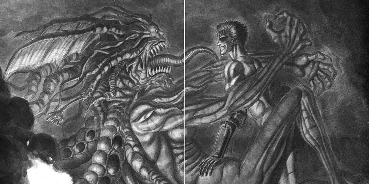 Creado por Kentaro Miura en 1989, Enloquecido es la historia del Espadachín Negro, Guts. A lo largo de los primeros capítulos del manga, Guts aparece como un protagonista completamente desagradable. Llega al punto en que la única razón por la que podría ser considerado un héroe es que los demonios que mata son mucho peores que él. Sin embargo, en el famoso arco de la Edad de Oro de la serie, los lectores finalmente aprenden cómo Guts se volvió tan insensible. Guts es un hombre que ha perdido todo lo que le importa varias veces. Si bien el Eclipse que terminó matando a su banda de mercenarios es el ejemplo más conocido de esto, el trauma de Guts se remonta incluso más atrás. Los lectores aprenden que Guts fue agredido sexualmente cuando era niño. De repente, su aversión a ser tocado tiene sentido. Esa personalidad fría y distante que lo define en los primeros capítulos es de repente un mecanismo de defensa que usa para protegerse de lastimarse. Todo esto hace que Guts sea un personaje mucho más profundo de lo que sugieren las apariencias iniciales… razón por la cual la apertura del manga simplemente no cuadra.