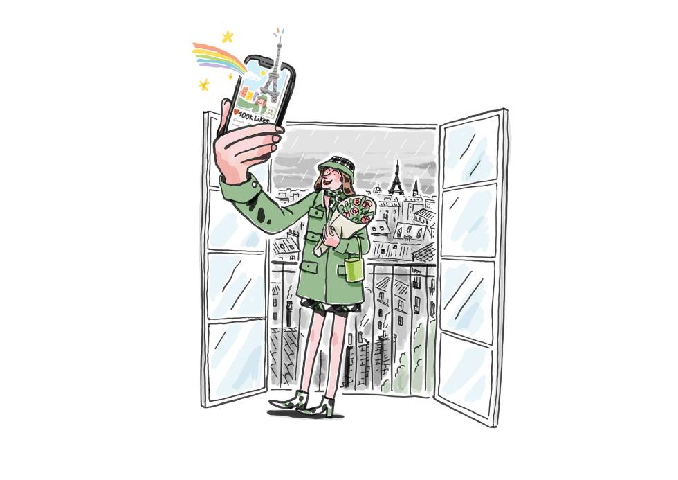 “Ver Emily en París es como leer el ¡Hola!: pura evasión, una fantasía donde nadie tiene problemas como los tuyos, y donde, al mismo tiempo, todo resulta tan irreal y flipante que no puedes dejar de mirar. Te lo tragas hasta el final”, resume Bengoechea. Con solo cinco posts, Emily tiene más seguidores en Instagram que Dulceida; Emily lleva bolsos de Marc Jacobs, chaquetas de Chanel y abrigos de Kenzo (que solo un sueldo de CEO podría soportar); Emily come cruasanes a pares, pero no pasa nada porque tiene un metabolismo más rápido que Usain Bolt; Emily vive en un París prepandémico donde el sexo ocasional no es irresponsable. “Te mueres de la envidia”, reconoce la ilustradora. “Cuando empezó el primer estado de alarma, las teles y plataformas comenzaron a producir contenidos sobre el confinamiento; pero esta moda duró menos que el propio confinamiento”, recuerda Cobeaga. “Todo lo que no esté relacionado con la actualidad y nos recuerde a tiempos pasados va a tener mucho éxito”. Sobre todo si lo podemos poner a parir juntos. Que para eso no hay toque de queda.