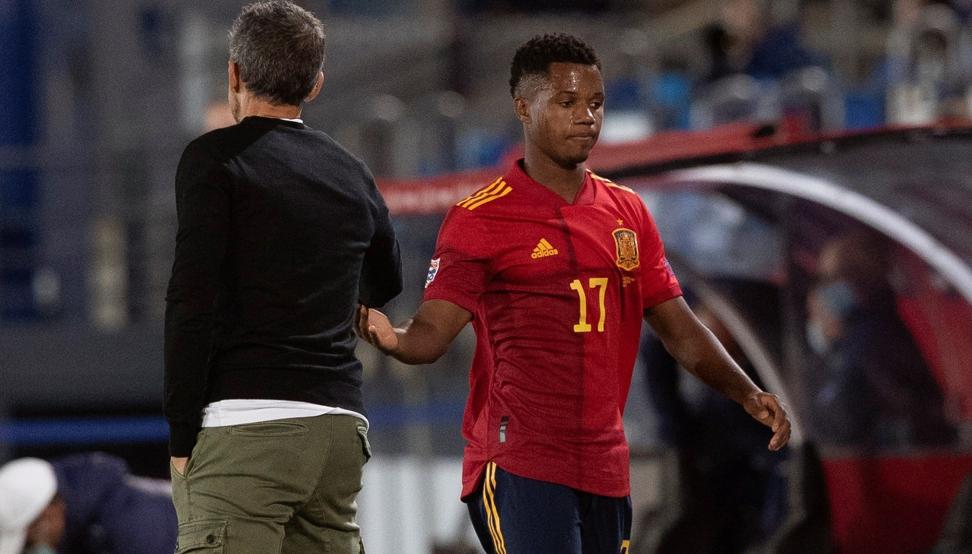 Luis Enrique lo cambió en el minuto 57 para dar entrada a Adama Traoré. Lo cierto es que la discreta actuación de Ansu Fati ante Suiza fue provocada por los defensas helvéticos y, sobre todo, por el sistema empleado por Luis Enrique. El seleccionador quería abrir el campo para romper la zaga suiza, pero eso acabó provocando que Ansu Fati y Ferran Torres apenas mostraran su peligrosidad en el área, aunque el del City a punto estuvo de marcar, pero fue un espejismo más que una realidad. Esa insistencia de Luis Enrique en que los extremos estuvieran pegados a la banda provocó, además, que Navas y Gayà, los laterales, tampoco pudieran sorprender con sus subidas por el área porque se topaban con sus extremos.