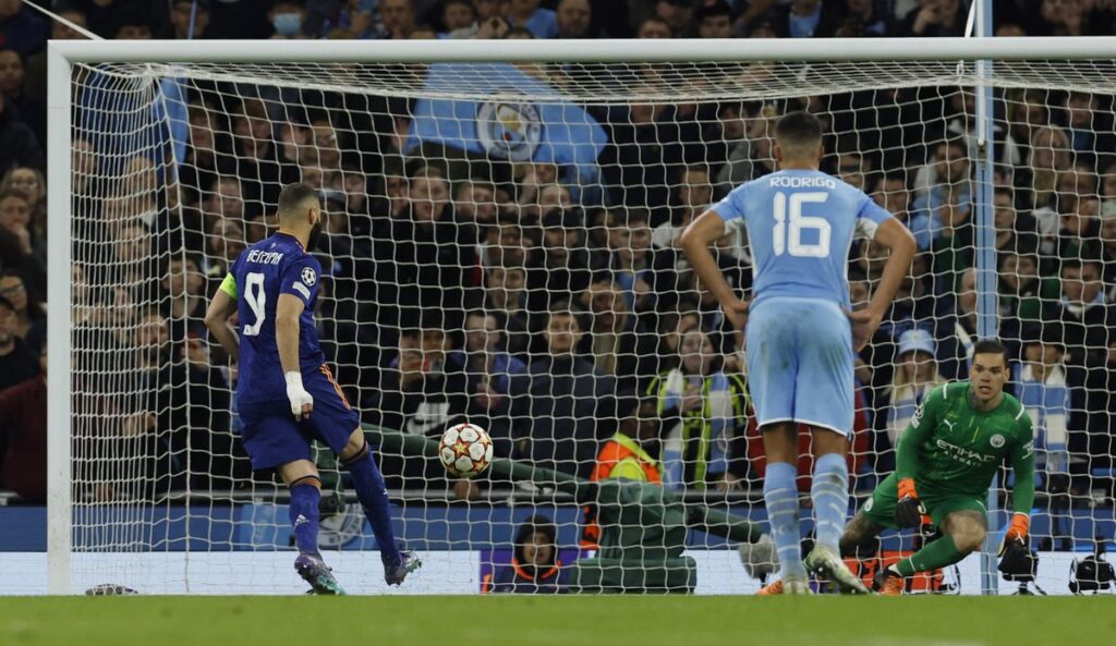Desde hace unos años, cada penalti carga de algún modo con todos los anteriores. Y los últimos del francés suponían un peso considerable tanto para él como para Ederson, el portero del Manchester City. Benzema había tirado sus últimos cuatro abajo a la izquierda, y tres los habían atrapado los guardametas: uno Dituro, del Celta, el 2 de abril en Balaídos; y los otros dos, Sergio Herrera, de Osasuna, el 20 de abril en El Sadar.