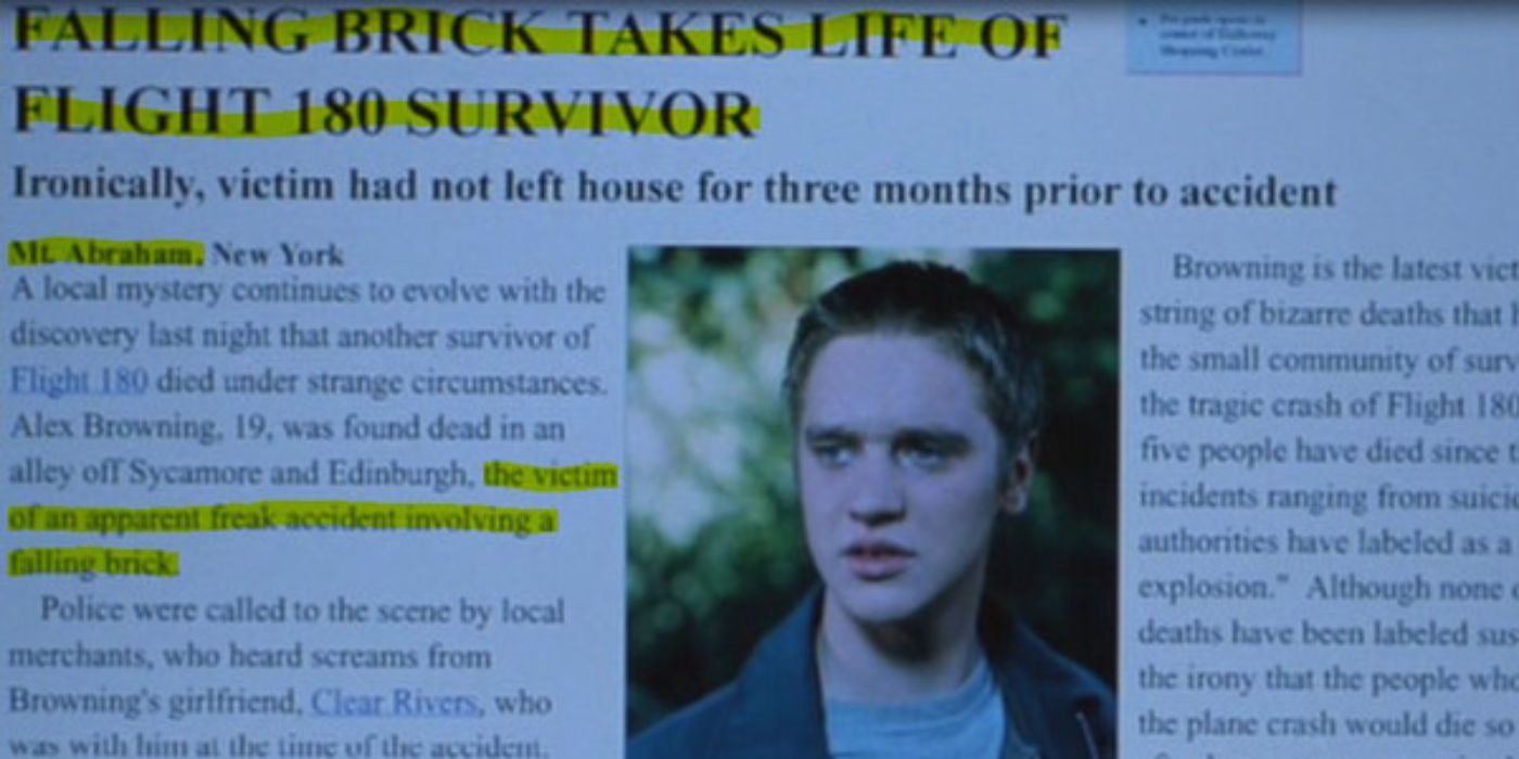 - El protagonista de Destino final, Alex Browning, es un personaje popular a pesar de aparecer sólo en una película de la franquicia.