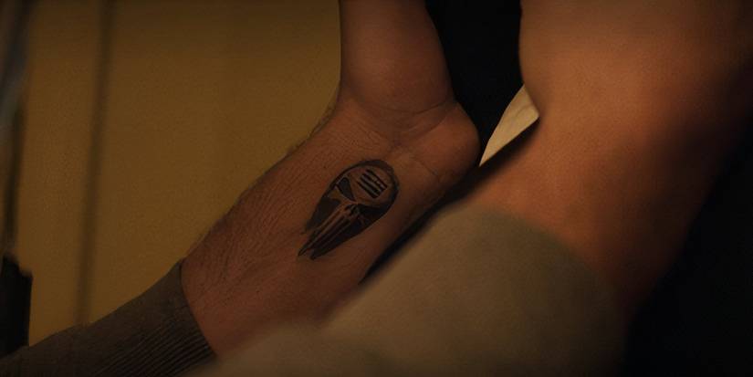 Curiosamente, sin embargo, el logotipo del Punisher es notablemente diferente. A pesar de que Frank Castle es uno de los pocos personajes de Marvel que regresan en Daredevil: Nacido de nuevono está presente en el estreno del programa, con su logotipo la única pista de su participación en la historia. Sin embargo, En lugar del logotipo típico del cráneo asociado con el antihéroe, Powell tiene una diferencia clara: el simbolismo de una bandera estadounidense en la frente. El logotipo es pequeño, pero parece que el tatuaje de Powell combina el logotipo del cráneo de Punisher con la iconografía del movimiento “Blue Lives Matter”.