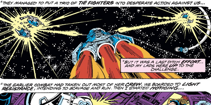 originales de marvel Guerra de las Galaxias Los cómics vieron el debut de una nave imperial dos años antes de que apareciera en una película en El imperio Contraataca. El Imperial TIE Bomber, una variante fuertemente armada del TIE Fighter estándar, apareció por primera vez en pantalla en El imperio Contraataca y apareció brevemente de nuevo en El regreso del Jedi, pero estaba previsto que apareciera una embarcación de aspecto similar en la película original de 1977. de maravilla Guerra de las Galaxias Los cómics fueron uno de los primeros ejemplos de revivir un concepto cinematográfico que no se usaba en ese momento, lo que ocurría con frecuencia como el Guerra de las Galaxias la franquicia creció.
