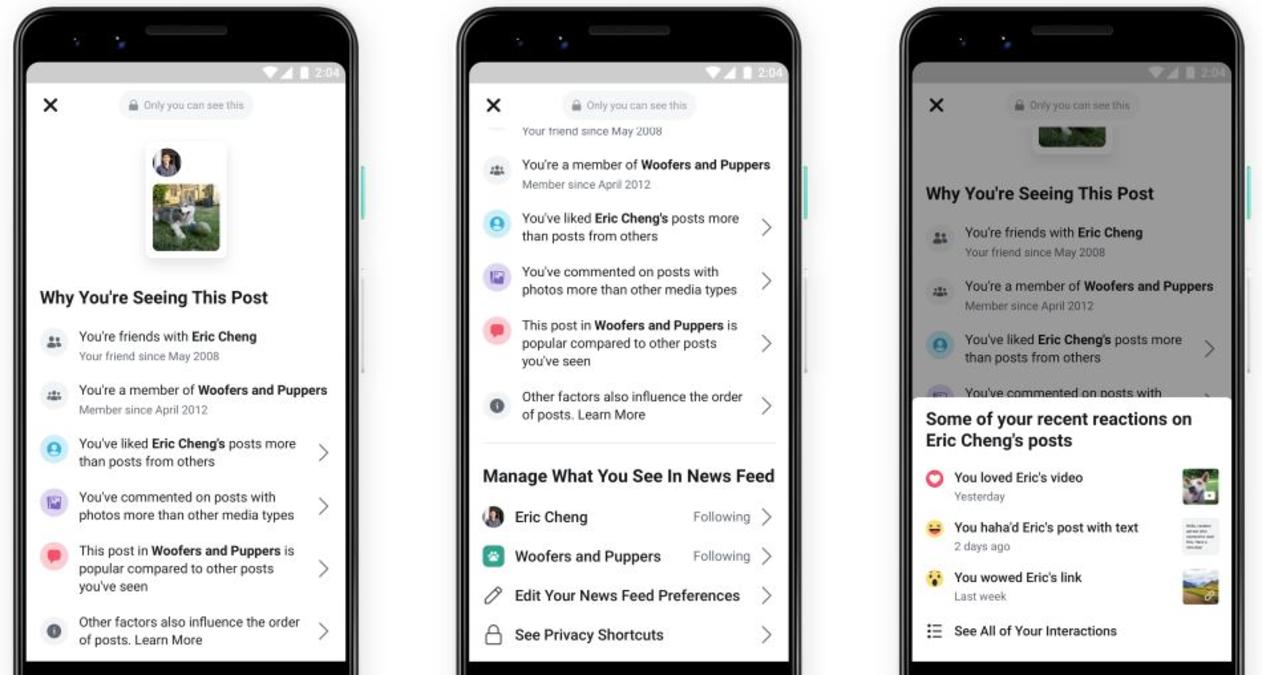 Facebook reconoce que durante una investigación que hizo sobre “¿Por qué veo esta publicación?”, la gente les dijo que la transparencia en los algoritmos del muro no era suficiente sin los controles correspondientes.