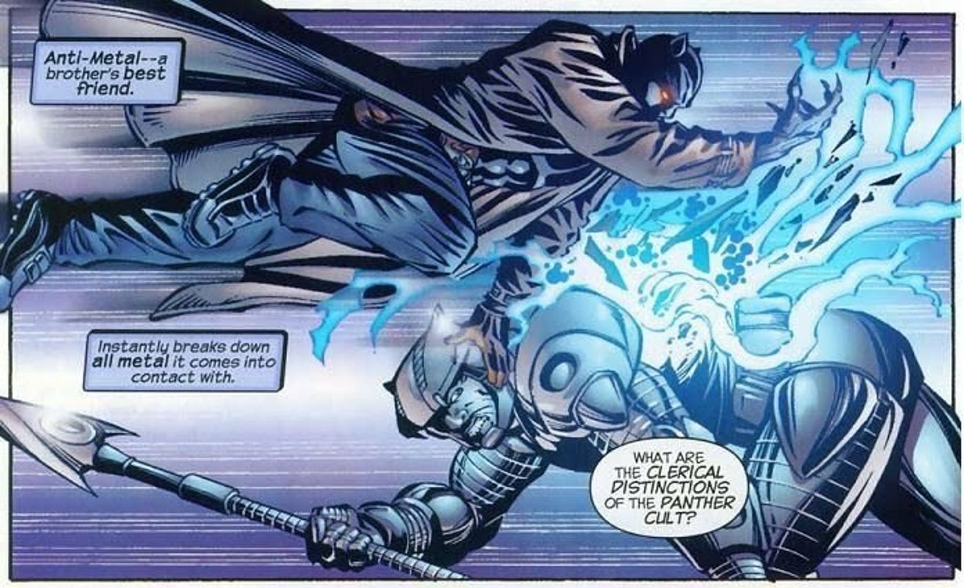 - Incluso la armadura de adamantium mejor diseñada no sería rival para los efectos del vibranio antártico, que puede desestabilizar las moléculas metálicas.