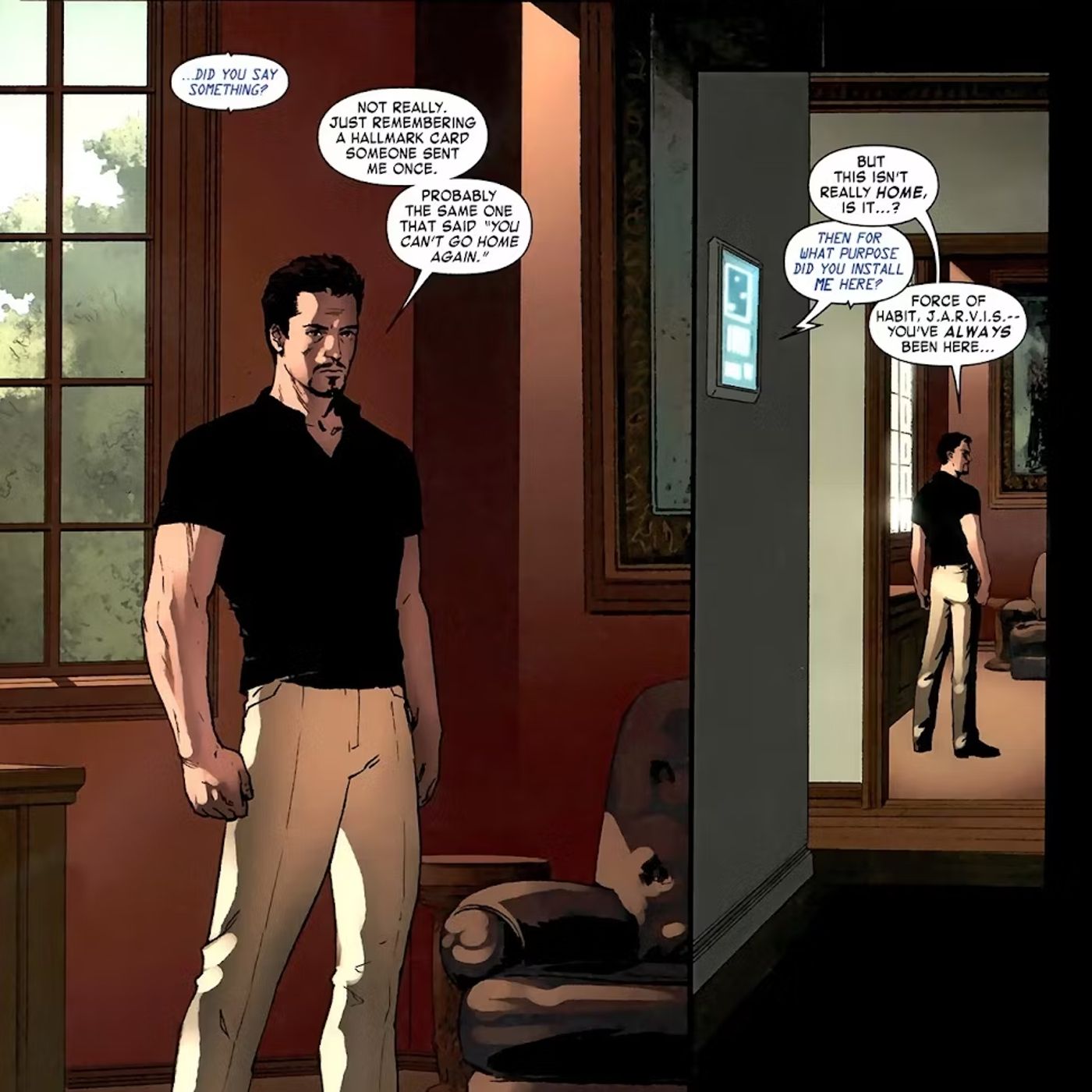 Este no fue un incidente aislado y esa dinámica fue persistente entre ellos dos. Tony recuerda a Jarvis como el “más feliz de ver [him]” cuando regresó de la escuela. Cuando piensa en su hogar, lo recuerda siempre estando allí. En una infancia por lo demás turbulenta y confusa, Jarvis fue un gran consuelo para él. No es de extrañar que su antiguo mayordomo fuera la inspiración para el sistema de sus trajes. Le permitió seguir siendo la primera voz en saludar a Tony cuando llegó a casa y sirvió como guía para muchas de las situaciones peligrosas que enfrentó Iron Man.