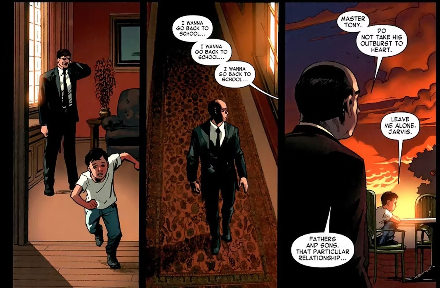 “/> La relación padre-hijo de Stark plantó semillas de inseguridad que llevaron a su inclinación por el escapismo. Sin embargo, una persona estaba del lado de Tony y él nunca la olvidó. El mayordomo de la familia Stark, Jarvis, era su verdadera figura paterna.y le dio a Tony el apoyo que nunca sintió por parte de Howard.