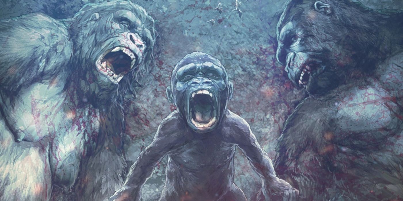 En la miniserie de cuatro partes. La isla calavera: el nacimiento de Kong Por Barnaby Legg, Arvid Nelson y Zid, la historia del origen de Kong se cuenta lentamente, a través de visiones fragmentadas experimentadas por el antagonista definitivo de la serie, y es tan trágicamente deprimente como uno podría imaginar.