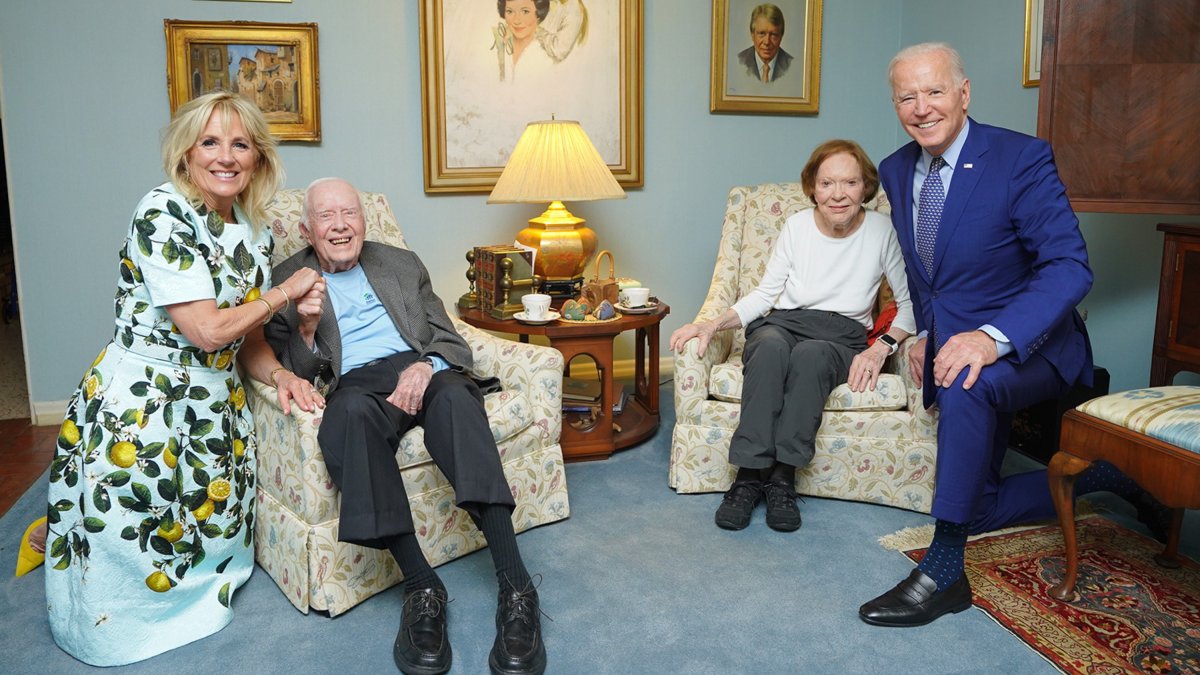 Una foto publicada por el Centro Carter el lunes tiene a la gente haciendo preguntas; y es que el expresidente Jimmy Carter y la exprimera dama Rosalynn Carter parecían diminutos sentados junto al presidente Joe Biden y la primera dama Jill Biden.