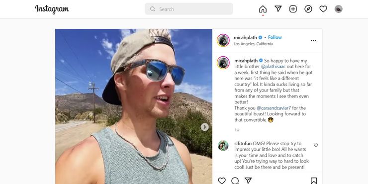 Micah es conocido por sus sesiones de fotos ardientes y sin camisa, que Bienvenido a Plathville a los fanáticos les encanta, pero también tiene un lado menos serio, especialmente cuando está con sus hermanos. Moriah ya visitó a Micah en Los Ángeles, cuando necesitaba alejarse de todo el drama de su relación. Conoció a sus amigos y se quedó con uno de sus amigos. Micah reveló que esencialmente ha estado holgazaneando en Los Ángeles, pero sus publicaciones de Instagram con su hermano menor, Isaac Plath, implican que le ha ido bien.