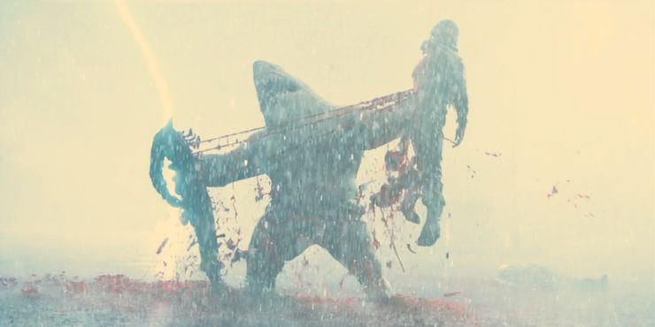 El otro gran problema con Guardianes de la Galaxia La clasificación R es la continuidad más estrecha de la MCU en comparación con la DCEU. El escuadrón suicida es una película de DCEU porque James Gunn nos dice que lo es, y porque algunos personajes son interpretados por los mismos actores. En todos los demás aspectos, es una película independiente que no transmite prácticamente nada de películas anteriores. No solo pueden tu miras El escuadrón suicida sin conocimiento de DCEU, podría decirse que es más agradable de esa manera. Las películas de DC han seguido este patrón durante un tiempo, con Mujer maravilla 1984 y Liga de la justicia de Zack Snyder (también con calificación R), ambos creando su propia continuidad hasta cierto punto. El formato de franquicia flexible de DC significa que está perfectamente bien tener tonos drásticamente diferentes entre cada película, deslizándose desde Mujer maravilla 1984, el equivalente cinematográfico de tragar terrones de azúcar, a un tiburón partiendo a un hombre en dos.