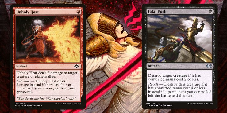 Por naturaleza, las criaturas en Magia: la reunión suelen ser fáciles de matar debido a que hay más cartas disponibles para eliminarlas. Los encantamientos, los artefactos y las tierras a menudo son más difíciles de sacar del tablero, por lo que cartas como Prismatic Ending y Abrupt Decay tienen una gran importancia en el formato moderno. Como las amenazas se ponen en el tablero más rápido, es importante poder tener respuestas rápidas que puedan lidiar con diferentes tipos de cartas con las que es difícil interactuar.