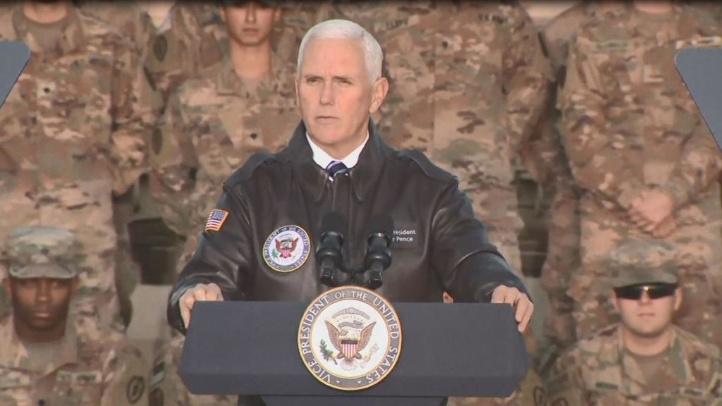 Momentos antes, Pence recibió un informe clasificado en la Base Aérea Al-Asad de Irak, desde donde las fuerzas estadounidenses lanzaron una operación en Siria el mes pasado que resultó en la muerte del líder del ISIS, Abu Bakr al-Baghdadi, y habló por teléfono con el primer ministro iraquí Adil Abdul-Mahdi.
