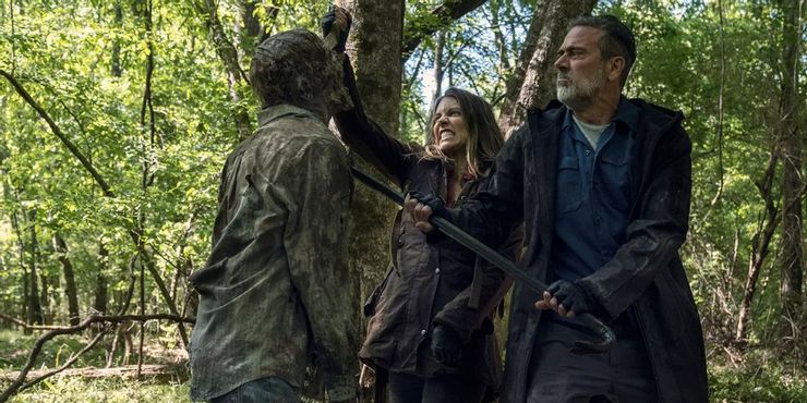 “Cuando dejamos a Negan, él se fue y dejó a Maggie, realmente sentimos que estaba terminando el arco de ‘Quiero unirme ahora, quiero ser parte de este grupo, déjame redimirme, déjame probarme a mí mismo. Todo cambió realmente cuando llegó Maggie. [back]. Creo que si eres Negan, ¿por qué confiarías en Maggie después de lo que hizo en Meridian? Sentimos que con ese espacio de cabeza, él realmente entró en el mundo sintiendo como, ‘Voy a empezar de nuevo’, sea lo que sea. Pero sabemos que Negan es un animal social, realmente le gusta tener gente con quien hablar, así que nos pareció que se uniría a un grupo”.