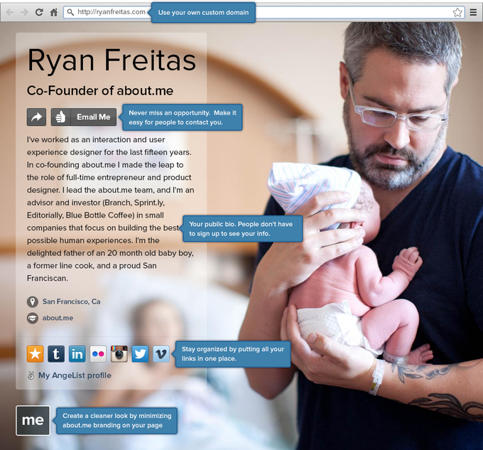 AOL, que se combinó con Yahoo para formar Verizon Media Group, anteriormente era propietaria de una plataforma de perfil web llamada About.me, pero la vendió a su creador Tony Conrad en 2013. Tumblr podría asumir gran parte de la funcionalidad de About.me como un directorio de Presencias de alguien en otras aplicaciones, y agregar eso a su plataforma de blogs. En lugar de estar atrapado en las cuadrículas y los diseños estandarizados de Instagram y Pinterest, Tumblr podría permitir a las personas crear un collage de página de inicio que represente sus identidades prismáticas.