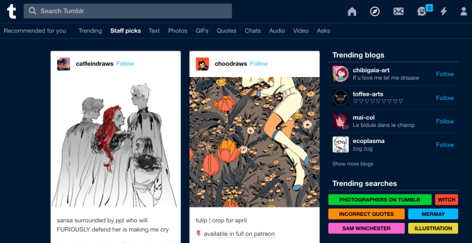 Desafortunadamente, la huella masiva de MindGeek significa que podría estar dispuesto a ofertar el precio más alto por Tumblr. Si Verizon vende Tumblr, debe buscar un comprador con un historial sobresaliente sobre cómo trata a los creadores. Pero Verizon también podría modernizar Tumblr para enfatizar qué se diferencia en el panorama tecnológico de hoy en día cuando se fundó en 2007. Obviamente, podría reabrirse al porno. Pero también hay oportunidades para la familia.