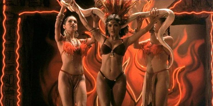 Pandemonio de Santanico Desde el anochecer hasta el amanecer La actuación también fue esencialmente improvisada, porque, según Salma Hayek (quien también curó su miedo a los caballos con eternos), sería imposible ensayar con una serpiente de todos modos. En cambio, se le indicó que “sentir” la música para la escena. Podría decirse que el baile de Santanico es Desde el anochecer hasta el amanecer La secuencia más icónica ahora, y la única vergüenza sobre el papel de Salma Hayek es que Seth la mata rápidamente después del primer ataque de vampiros.