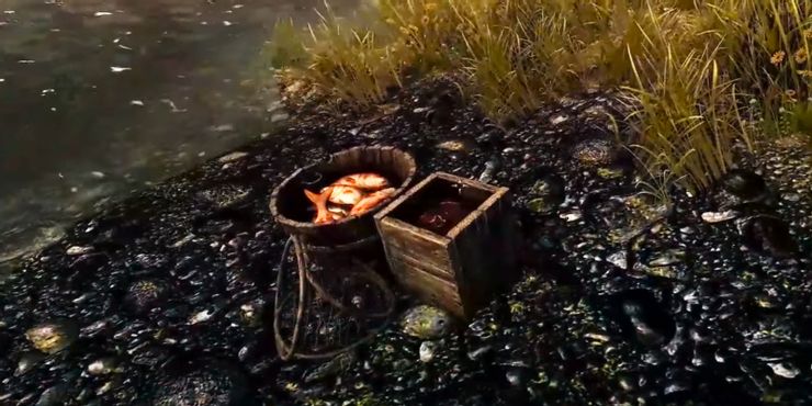 Entre los contenidos de este Club de creación se incluye Edición de aniversario de SkyrimMecánica de pesca, una novedad en la serie. Técnicamente, los peces podían capturarse en el juego base, pero los jugadores tenían que hacerlo manualmente, nadando en el agua y atrapando peces uno por uno, en lugar de con una caña de pescar. Dado que los peces son una parte importante de SkyrimEn la mecánica de la cocina y la alquimia, esta característica es un pequeño pero significativo paso adelante, en términos de inmersión y juego de roles.