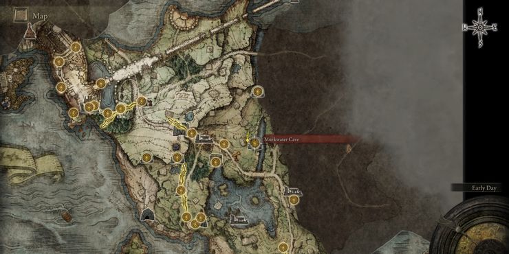 Este cofre en la cueva de Patches teletransporta al jugador a una nueva área de Anillo de Elden mapa para explorar. En este caso, es East Limgrave, justo en frente de un oso gigante. Los jugadores probablemente no estarán equipados para luchar contra él, pero deben tener en cuenta que cerca hay un mapa de East Limgrave, por lo que vale la pena desafiar las enormes garras del oso para alcanzar el fragmento del mapa. Luego, los jugadores deben encontrar un Sitio de Gracia para poder viajar rápido nuevamente, pero siempre pueden subirse a Torrent y cabalgar como el viento hacia uno que ya hayan descubierto.