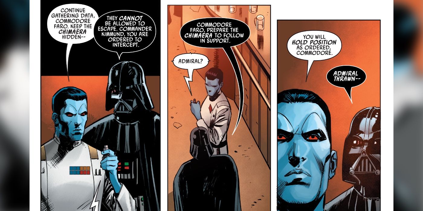 - Thrawn se arriesga a la ira de Vader al desafiar sus órdenes, pero se salva debido a su valor para el Imperio y el favor de Palpatine.