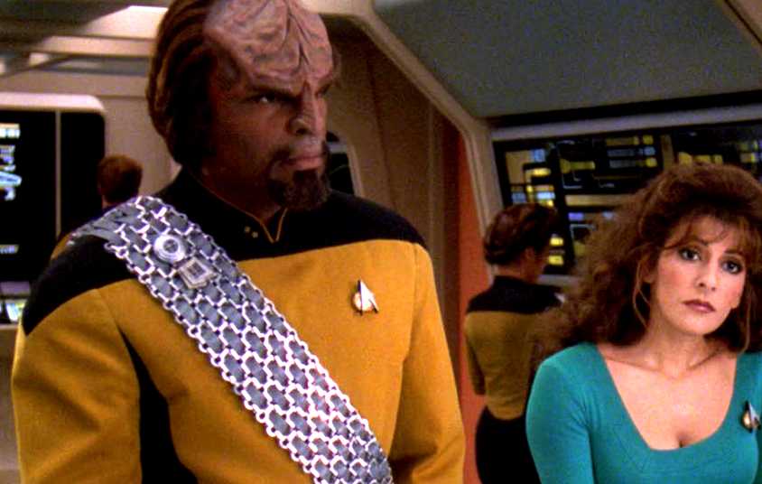 La pareja romántica de la temporada 7 de Star Trek: La Nueva Generación, formada por Worf y la consejera Troi, no es popular, pero tiene un gran apoyo en Michael Dorn.
