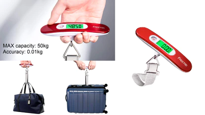 Esta báscula para maletas tiene una capacidad de medición de hasta 50 kilos con una división más baja de 0.01 kg / 0.02LB. Es muy fácil de usar, ya que cuenta con una correa y gancho de suspensión que se puede acoplar al asa de la maleta para pesarla. La correa va unida a un soporte rígido con un display en el que se muestran los valores en la unidad de peso que se desee: kilos (kg), libras (Lb) u onzas (Oz). La báscula dispone de función de tara, de autoapagado y de bloqueo automático.