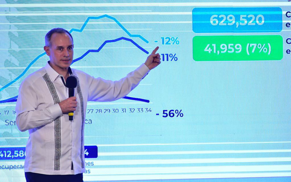 Al dar el informe diario de coronavirus, el subsecretario de Salud informó que hasta este domingo se contabilizan 595 mil 841 casos positivos y 64 mil 158 defunciones.