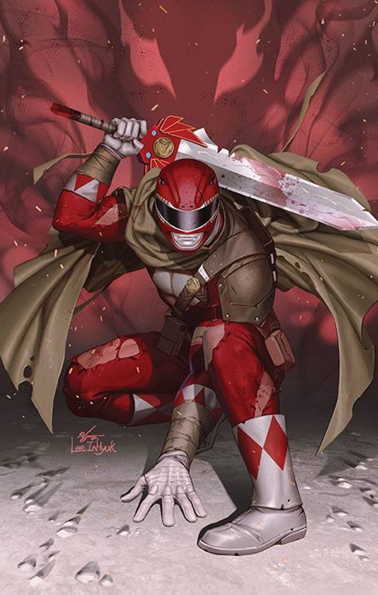 El traje de vigilante de Jason recibe una gran atención gracias a la portada variante de InHyuk Lee de Mighty Morphin Power Rangers: El regreso #2, que se lanzará el 13 de marzo. La portada ofrece a los lectores una mirada más cercana al uniforme actualizado del Red Ranger, esta vez con su característica espada cubierta de sangre.