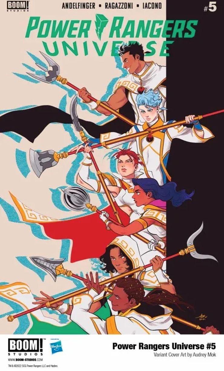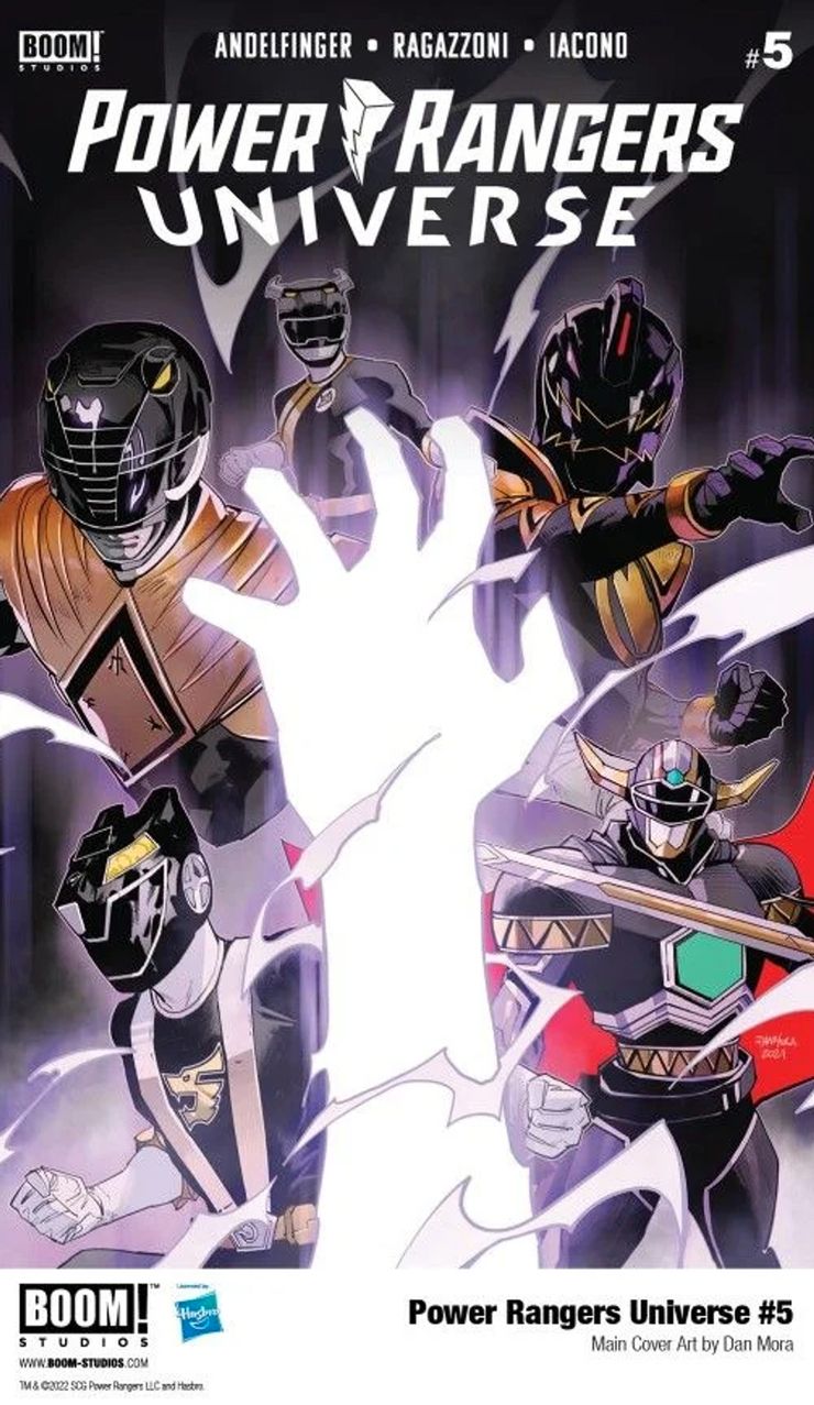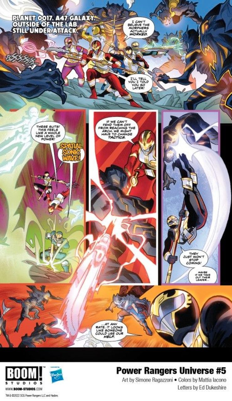 Previsualizar imágenes de Universo Power Rangers El número 5 de Nicole Andelfinger y Simone Ragazzoni ha sido revelado por cortesía de CBR, que también compartió la portada de Dan Mora, así como portadas variantes de Kath Lobo, Goñi Montes, Michal Ivan y Audrey Mok. Quizás lo más interesante es la sinopsis incluida, que dice lo siguiente: “En Masterforge, los Morphin Master Teens y el Morphinaut sienten la réplica del cráter humeante en la superficie de la Tierra. En el misterioso lugar del accidente, sus nuevos poderes y habilidades se ponen a prueba contra una horda de soldados de a pie. Pero, ¿qué sucede? cuando sus poderes comienzan a fallar… e incluso comienzan a volverse contra ellos?” Universo Power Rangers El #5 cae oficialmente el 27 de abril.