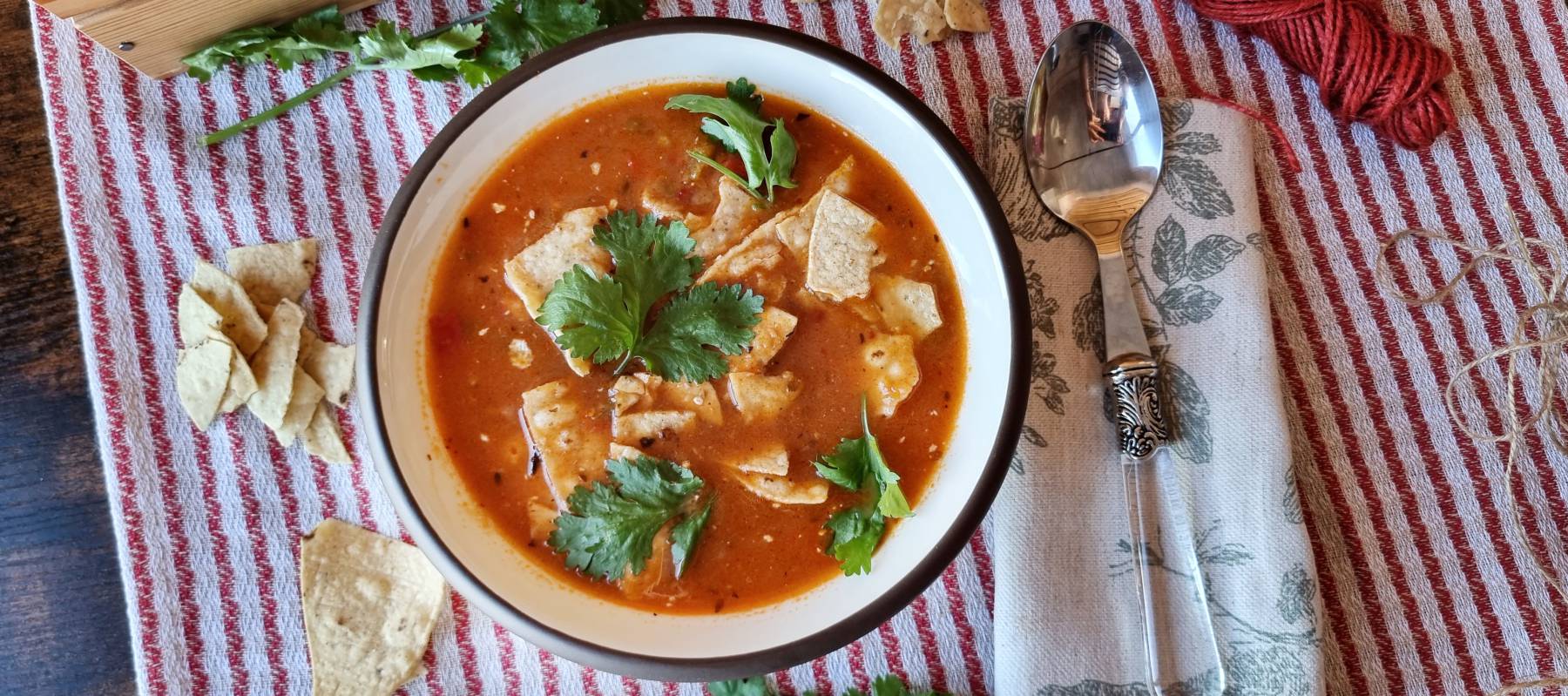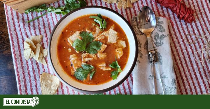Se suele acompañar de trozos de lima, de tostadas o restos de totopos fritos crujientes, y hay quien añade lechuga picada fina, cebolla blanca, rábanos o lo que a cada uno nos apetezca. Importante: ni lleva tomate ni se le espera. ¡Ah! Y su origen es prehispánico, estamos hablando de una sopa que se come mucho en fiestas pero que es tremendamente popular, y dicen que resucita a un muerto.