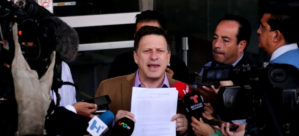 “Evidentemente no fue una petición libre a los empresarios”, declaró el perredista, al exterior de las instalaciones de la FGR, empuñando una copia de la denuncia penal que interpuso.