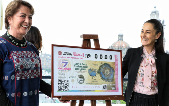 La Lotería Nacional presentó el billete para el sorteo conmemorativo por los 500 Años de Resistencia Indígena. 1521-Toma de Tenochtitlán, que busca reconocer a los pueblos originarios de México.