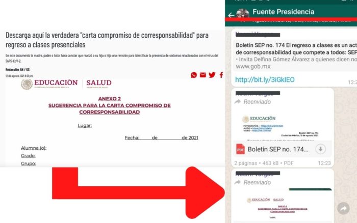 Después de que circularan al menos dos versiones distintas de cartas en otros medios, Aristegui Noticias publicó: Descarga aquí la verdadera “carta compromiso de corresponsabilidad” para regreso a clases presenciales.