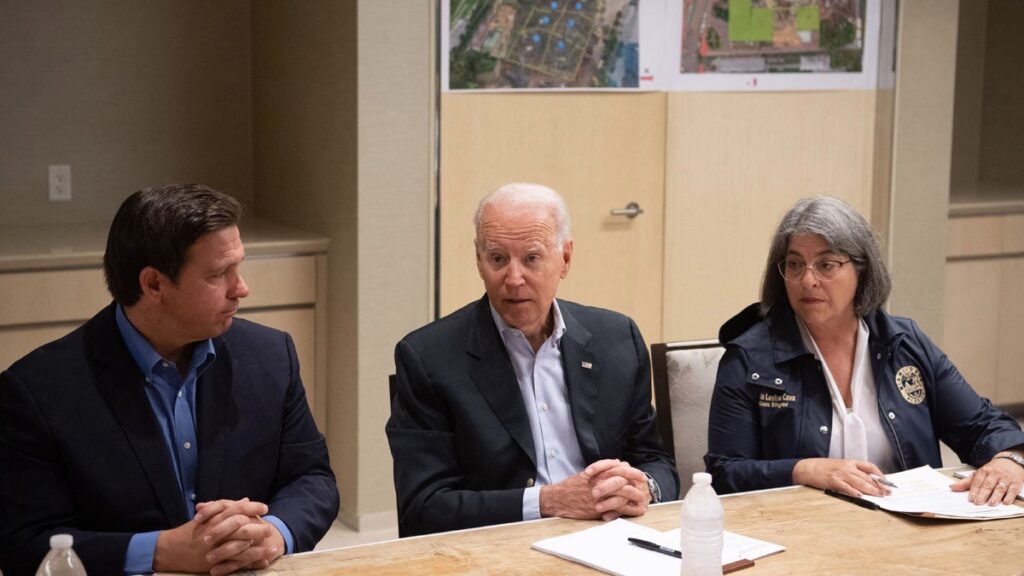 El primer punto de la agenda de este jueves fue una reunión con Daniella Levine Cava, alcaldesa de Miami-Dade, quien ofreció esta mañana su habitual conferencia de prensa junto al gobernador de Florida, Ron DeSantis, antes de la llegada de Biden a Surfside.