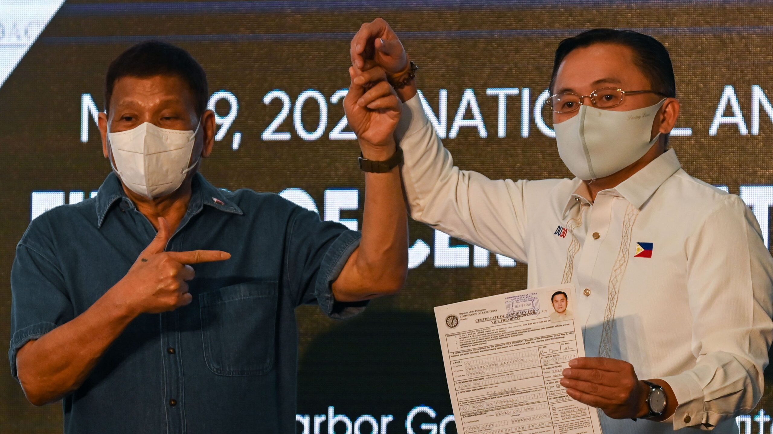 Duterte realizó su anuncio sorpresivo de retirarse de las elecciones tras acompañar a su antiguo asistente, el senador Bong Go, quien se registró como aspirante a la vicepresidencia en un centro de la Comisión Electoral.