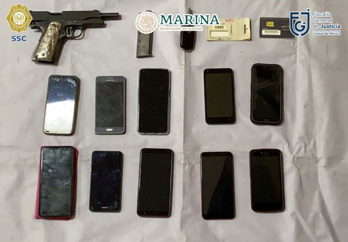 En el domicilio de Hidalgo se logró detener al sospechoso, identificado como Jonathan “N”, en posesión de un arma de fuego corta y 10 teléfonos celulares, así como un vehículo con placas de circulación del estado de Guerrero.