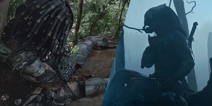 Un tropo común en el Depredador La franquicia es mostrar que Predator trata sus heridas con su botiquín de primeros auxilios alienígena. En el primero Depredador, la criatura trata una herida de bala mientras está sentada en un árbol, usando herramientas que parecen familiares, mientras se inyecta algún tipo de sustancia. en 1990 depredador 2, la criatura se trata a sí misma cuando el personaje de Danny Glover le corta el brazo, sellando la herida mientras usaba el baño de un apartamento en Los Ángeles, e incluso haciendo una pasta con azulejos triturados. En Presala criatura simplemente se toma un momento para inyectarse una aguja y luego sellarse un corte en la pierna, una referencia adecuada a la anterior Depredador Película (s.