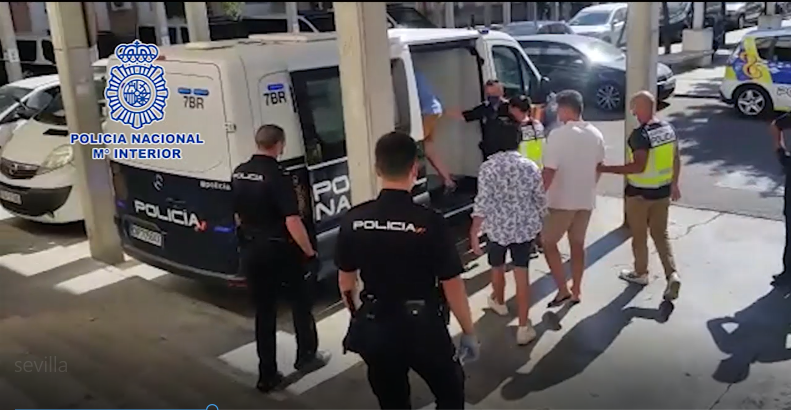 Traslado de los cuatro detenidos por una agresión sexual múltiple en Sevilla.POLICÍA NACIONALUn juez de Sevilla ordenó el miércoles por la tarde prisión provisional para cuatro jóvenes que, presuntamente, agredieron sexualmente a dos menores el pasado sábado. Las víctimas, de 15 y 16 años, fueron grabadas con un teléfono móvil, según ha informado la Policía Nacional este jueves. Los cuatro implicados, de nacionalidad francesa, fueron detenidos el lunes en el aeropuerto de Sevilla cuando intentaban regresar a París. Las adolescentes recibieron asistencia en el Hospital Universitario Virgen Macarena.Los detenidos, que no tenían antecedentes policiales, estaban pasando unos días en la capital andaluza. Conocieron a las chicas el pasado sábado en una terraza de la Alameda de Hércules, en el centro de la ciudad. Primero las invitaron a varias consumiciones alcohólicas y después las convencieron para celebrar una fiesta en el apartamento donde estaban alojados, que disponía de un ático con piscina, lugar donde bebieron más alcohol. Los agresores se aprovecharon del alto estado de embriaguez y desorientación de las adolescentes para, presuntamente, agredirlas sexualmente, pese a que opusieron resistencia. Los hombres grabaron la escena con un teléfono móvil.La investigación comenzó este lunes, después de que el Hospital Universitario Virgen Macarena, donde estaban ingresadas las menores, pusiera los hechos en conocimiento del juzgado, desde donde se dio aviso al Grupo de Menores (GRUME) de la Policía Nacional. Los agentes localizaron a los sospechosos en menos de seis horas Las diligencias permitieron identificar a los presuntos autores, y conocer que iban a coger un vuelo esa misma tarde destino a París. Una vez detenidos, fueron puestos a disposición judicial, que decretó el inmediato ingreso en prisión de todos ellos.