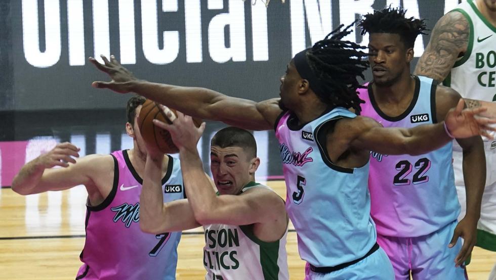 Los vigentes campeones del Este, Miami Heat, dieron el callo durante gran parte del encuentro, remontando en el tercer cuarto la ventaja que habían perdido durante el primero. Estuvieron liderados por Jimmy Butler, que tuvo por fin una actuación sólida al terminar con 26 puntos y 8 rebotes la noche. Butler estuvo bien escoltado por Bam Adebayo, que se quedó a apenas dos rebotes de lograr un triple-doble ante los Celtics.