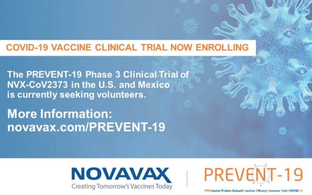 La empresa de biotecnología Novavax, Inc. anunció el inicio de su estudio fase III en México y en Estados Unidos, cuyo objeto es evaluar la eficacia de la vacuna NVX-CoV2373 contra la enfermedad de COVID-19.