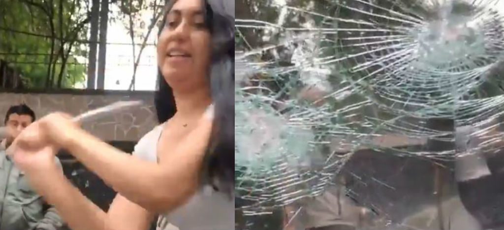 En un video se aprecia cómo una joven destroza el parabrisas y el vidrio de la puerta de un automóvil con un bate de metal.