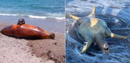 Animales muertos por el derrame sulfúrico de Grupo México al Mar de Cortés.