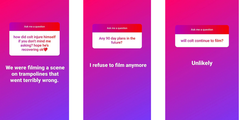 vanessa le dijo a un Prometido de 90 días fan en Instagram que se negaba a filmar más después del devastador percance. Afirmó que era poco probable que Colt filmara más Prometido de 90 días cualquiera. Colt nunca habló sobre el asunto en sus propias redes sociales. En octubre de 2023, Colt estaba programado para su cuarta cirugía.. Vanessa permaneció al lado de su marido durante toda su recuperación, aunque habían tenido problemas matrimoniales cuando ocurrió el accidente.